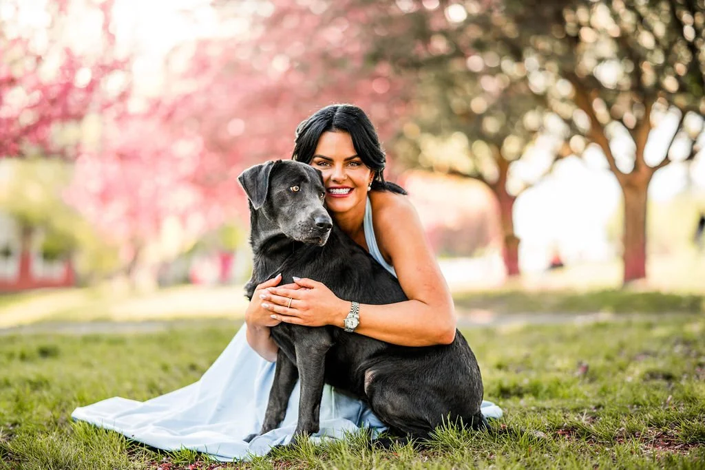 Mercedes and her beautiful pup Luna were both a treat to have in front of my camera. Her beautiful baby blue dress and bow complimented the blossoms perfectly. It was an incredibly busy day, but thanks to photoshop you could never tell! It’s always chaotic trying to navigate the parks during blossom season, as obviously everyone wants their stunning portrait in front of the beautiful trees. But luckily when you book with me, it will look like you had the entire park all to yourself!
